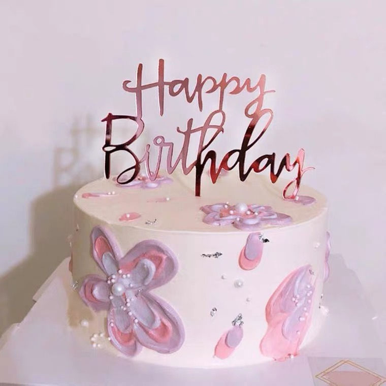 亞克力蛋糕插牌 - HappyBirthday 玫瑰金